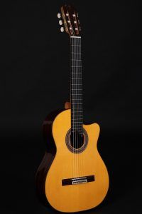 Guitarra Cutaway fabricada con materiales que potencian su sonido, dándole carácter y una brillante ejecución. Además se han cuidado especialmente los detalles, realzando la belleza del instrumento. Mira sus características más abajo.